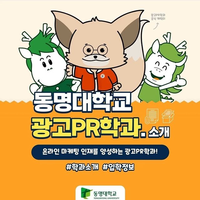 🦊 동명대 광고PR학과 입학정보👍우리 학교 홍보팀에서 카드뉴스를 만들어 주셨어요. 센스있게 리미도 등장시켜 주셨네요 ☺️ 동명대 광고PR학과 파이팅!!