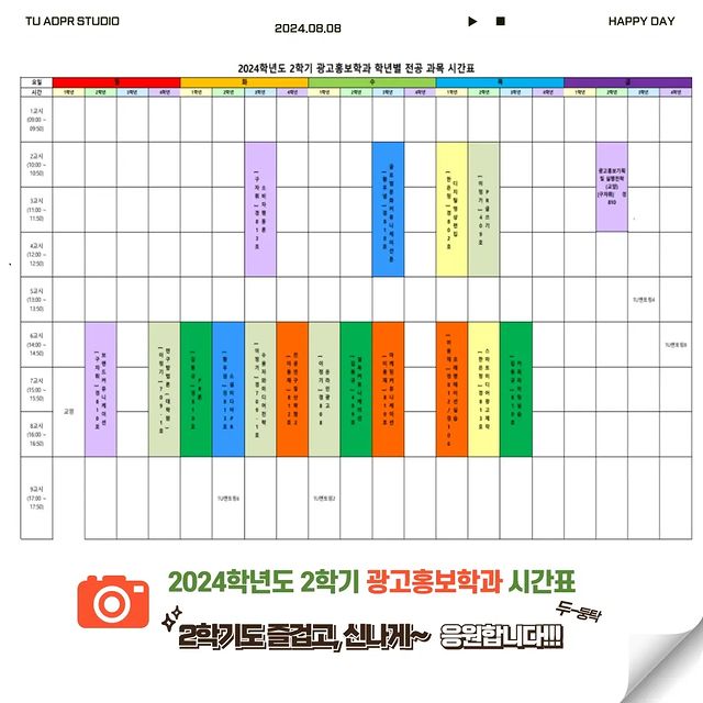 📣 2024년 2학기 시간표(수강신청 결과 반영) 입니다. 교수님 수업 시간 전후에 상담도 가능하니 확인해 두세요. 😀 9월 2일 개강 후 수강정정도 가능합니
