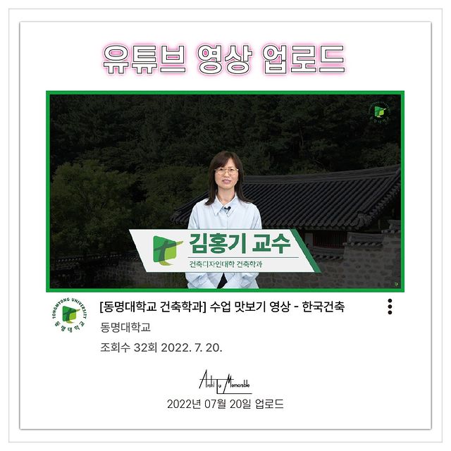 세 번째로는 김홍기 교수님의 한국건축 과목 영상이다요✨