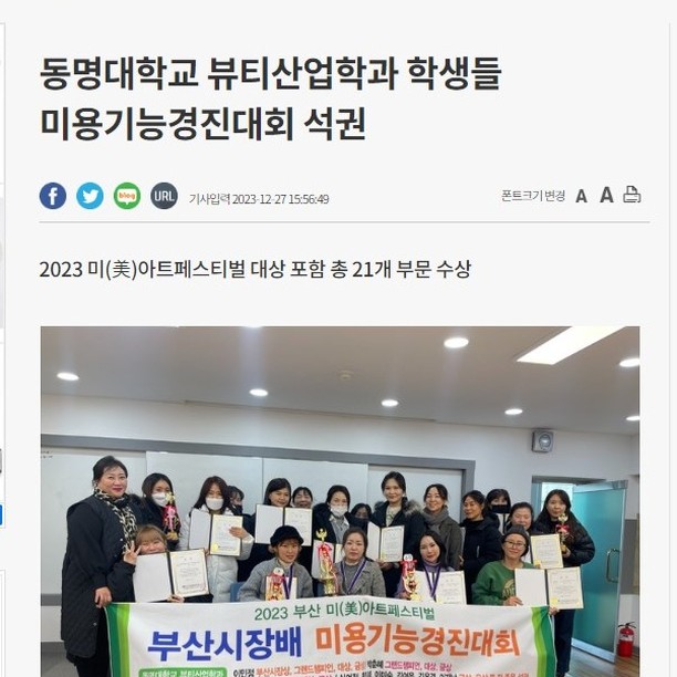 동명대학교 뷰티산업학과 입상내용이 아시아경제 신문에 기사가 났어요~~~~