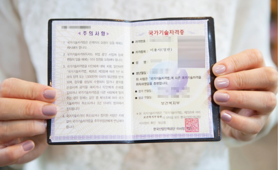 졸업 후 미용사 면허증 취득