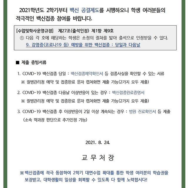 2021년도 2학기 시외통학버스 운행 일정을 아래와 같이 변경하오니 참조바랍니다.