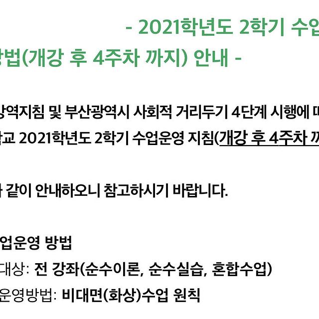 [공지] 2021학년도 2학기 수업운영 방법(개강 후 4주차 까지) 안내