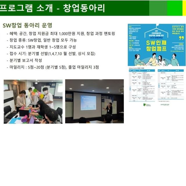 동명대 컴퓨터공학과는 SW 중심대학 사업에 참여하고 있으며 다양한 창업동아리에 참여해 보세요.