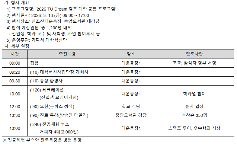 [대학혁신 E04] 2026 TU Dream 캠프‘대학 공통 프로그램’안내
