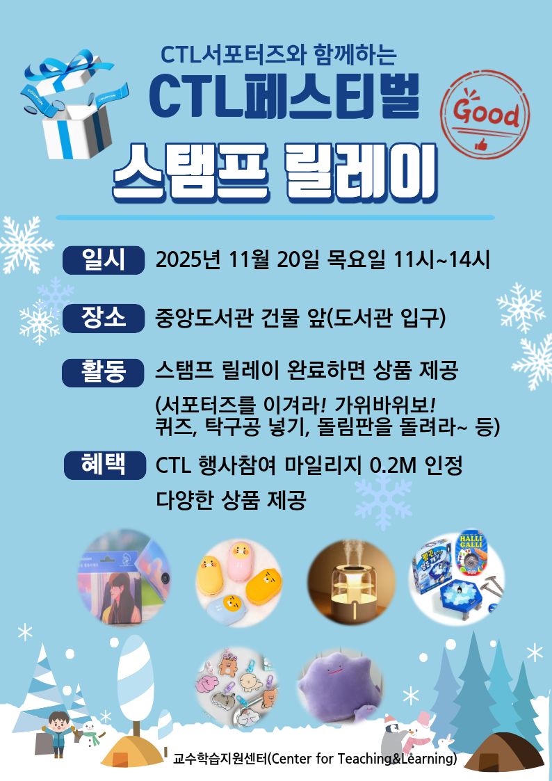 동명대학교 교수학습지원센터에서는 아래와 같이 학생 참여형 이벤트 「CTL 페스티벌 스탬프 릴레이」를 운영합니다.