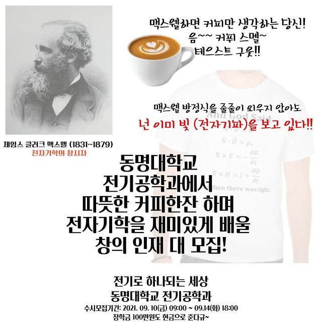 #동명대학교 #전기공학과 #2022 #수시모집 #장학금 #100만원 #창의인재 #맥스웰 #전자기학 #신나는수업 #맥스웰커피 #따뜻한커피한잔