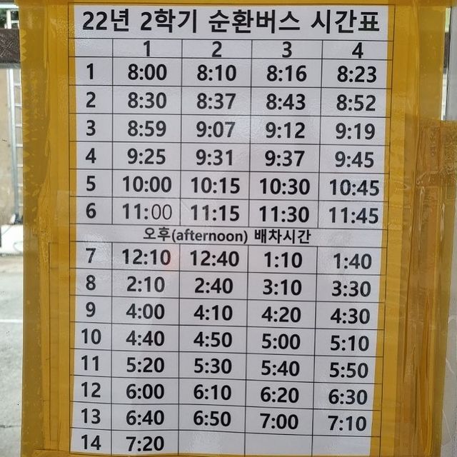 2학기 셔틀 시간표 입니다