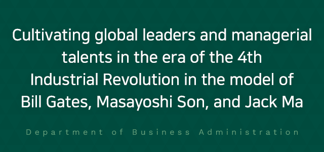 The Department of Business Administration cultivates competent global talents who can strategically operate various management organizations centered on companies. By reading the changes in the future environment symbolized by the Fourth Industrial Revolution, we educate through theory and practice in a balanced manner to assure the continuation of the organization and foster future managers who can grow and develop the organization. Furthermore, we provide specialized guidance and support activities to students who want to develop their startup experience based on fostering entrepreneurship.