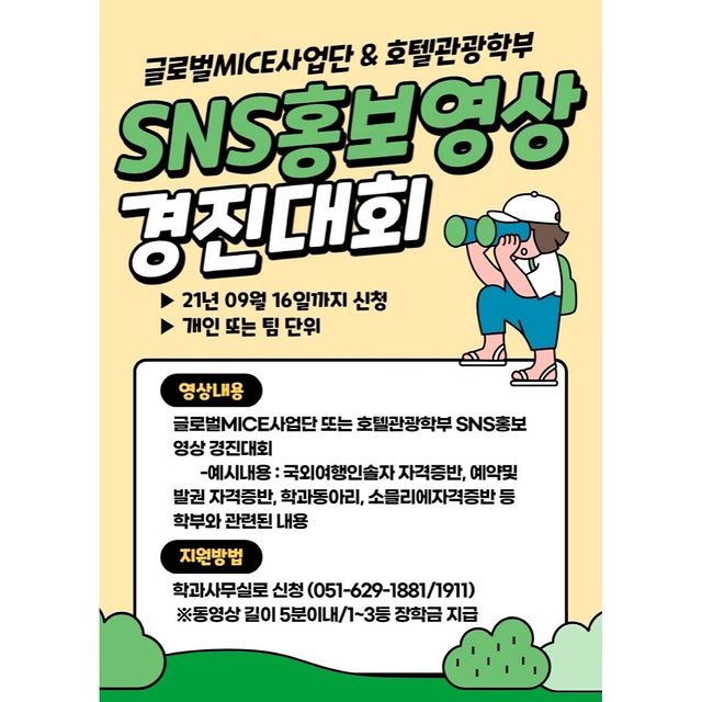 📌 글로벌 MICE사업단 또는 호텔관광학부(호텔경영학과) SNS 홍보영상 경진대회 신청자 모집안내