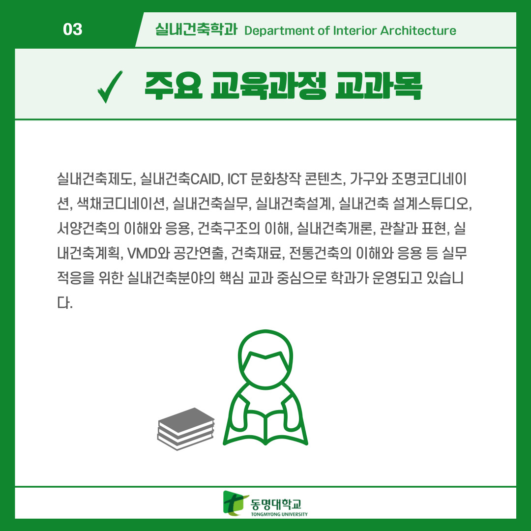 | 2006. 03 | 동명대학교 건축대학 실내건축학과 대학명변경 |