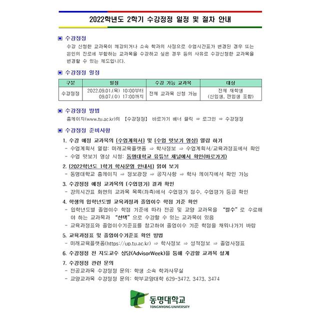 ❗️2022학년도 2학기 수강정정 일정 및 절차 안내❗️