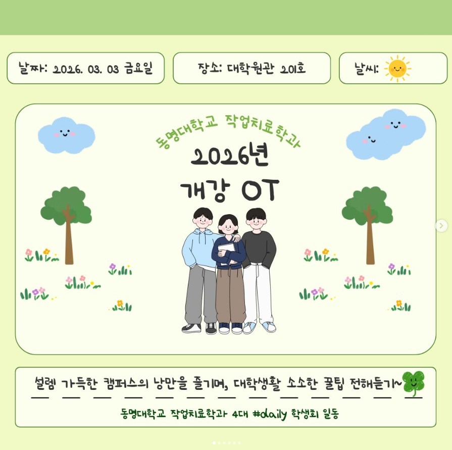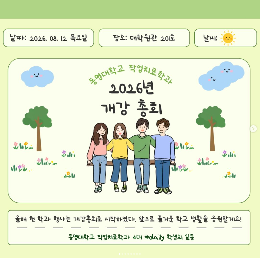 2026.03.12(목) 대학원관 4번 건물 201호에서 작업치료학과 개강총회가 진행되었습니다.