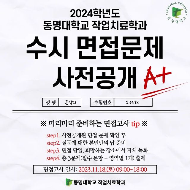 동명작치 면접전형을 지원한 친구들에게 알려드립니다❤