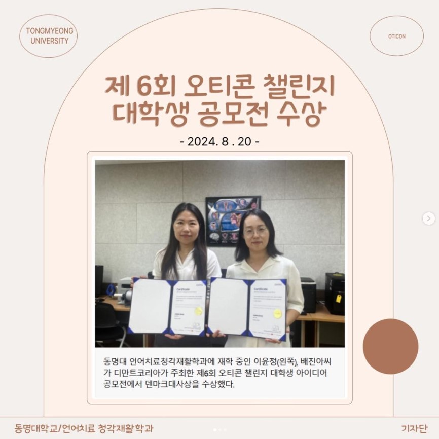 🙌🏻동명대 언어치료청각재활학과, 오티콘 챌린지 대학생 공모전 수상🙌🏻