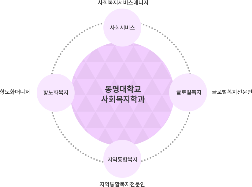 - 관련교과목 : 사회복지정책론, 지역사회복지론, 사회복지현장실습, 국제사회문화복지론, 사회서비스론, 사회문제론 등