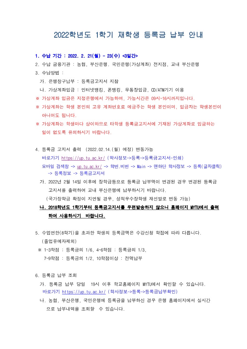 4. 최종등록 : 2022.03.28(월) ~ 29(화) 부산은행(가상), 교내부산은행